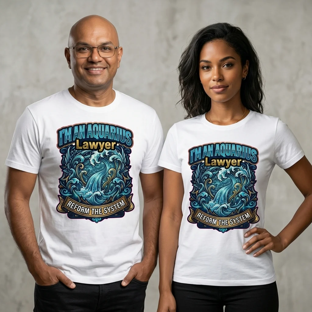 Aquarius Lawyer T-Shirt Reform the System Zodiac Star Sign Gift UK