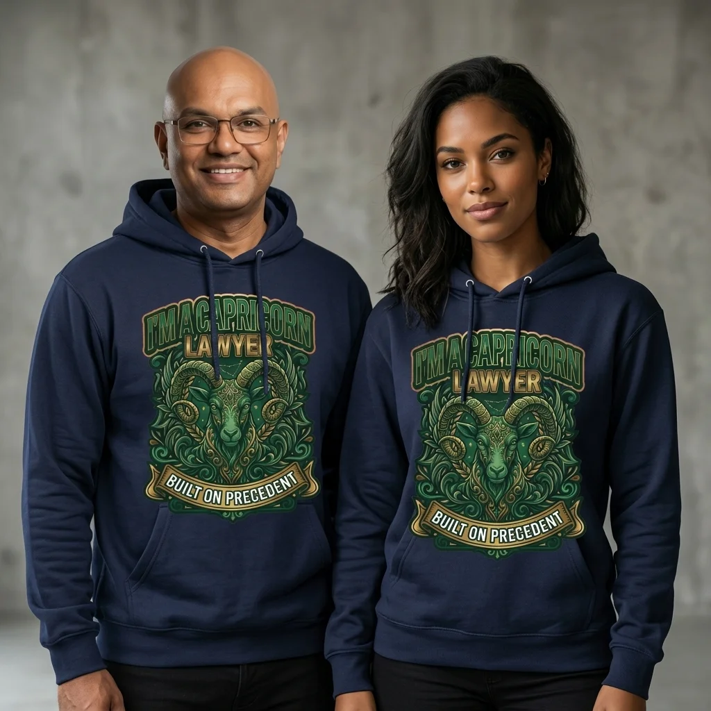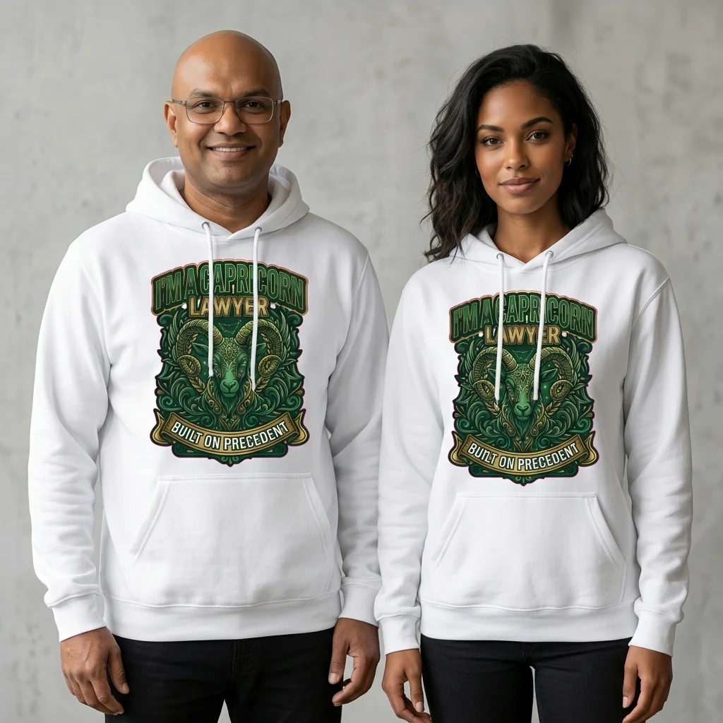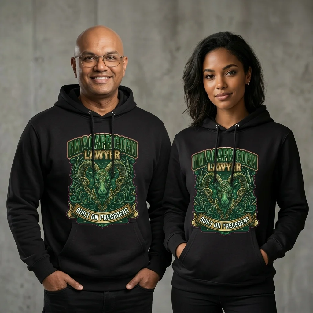 Show the world exactly who you are with this bold, eye-catching Capricorn Lawyer pullover hoodie. Featuring a striking ornate ram design in deep green and gold tones, paired with the motto “Built on Precedent”, this hoodie is the perfect statement piece for any Capricorn who works in law — or simply wants the world to know it.