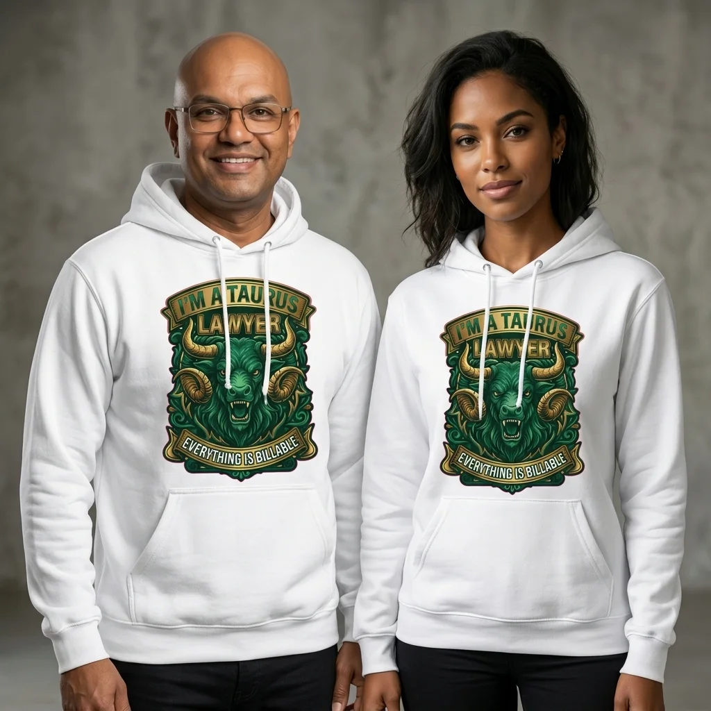 Show the world exactly who you are with this bold, eye-catching Taurus Lawyer pullover hoodie. Featuring a striking ornate bull design in deep green and gold tones, paired with the motto “Everything Is Billable”, this hoodie is the perfect statement piece for any Taurus who works in law — or simply wants the world to know it.